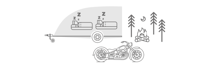 Pendant les loisirs de plein air, les événements motards et sportifs, la remorque est utilisée comme un espace de repos