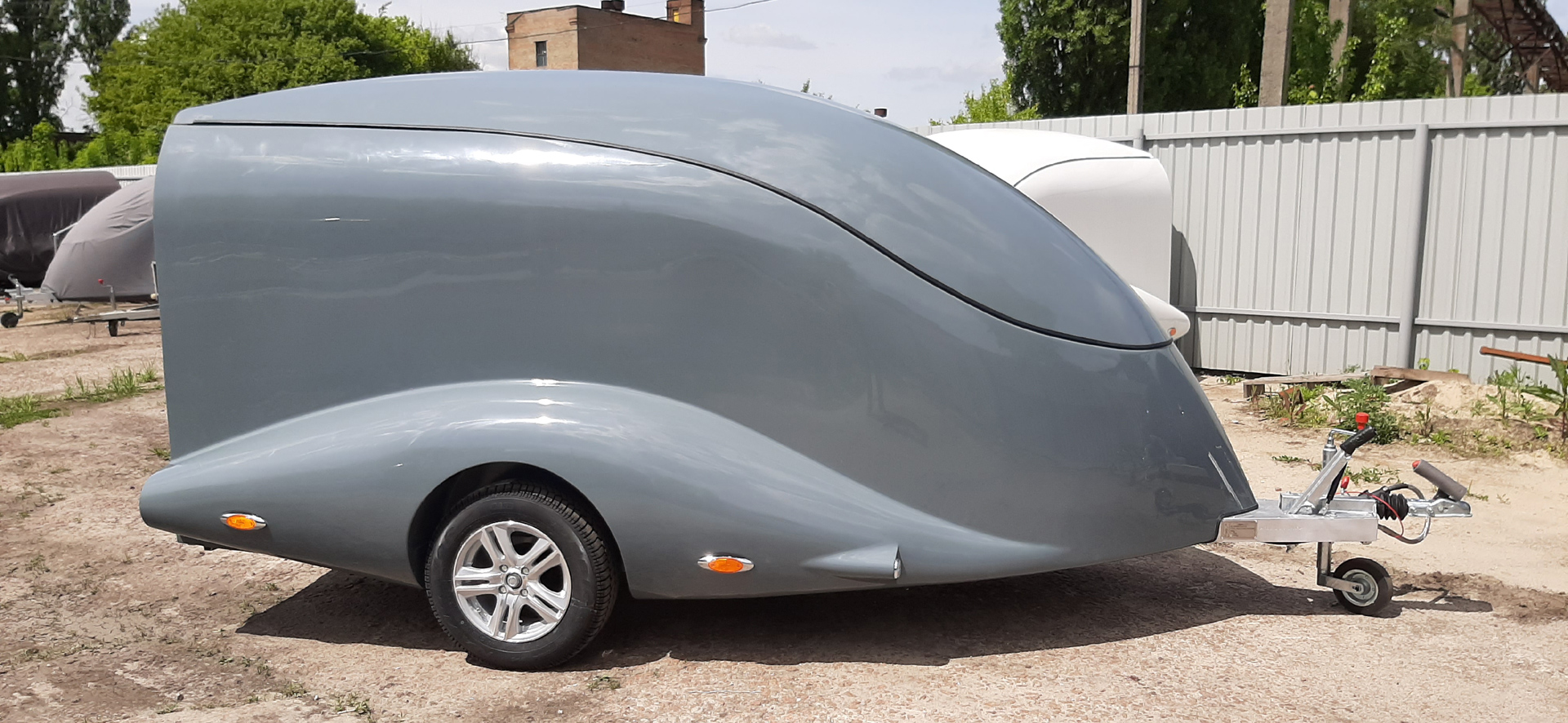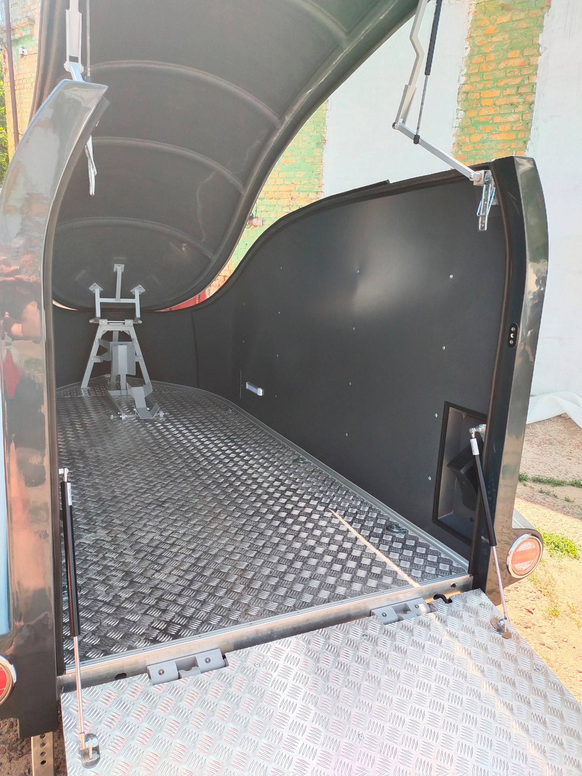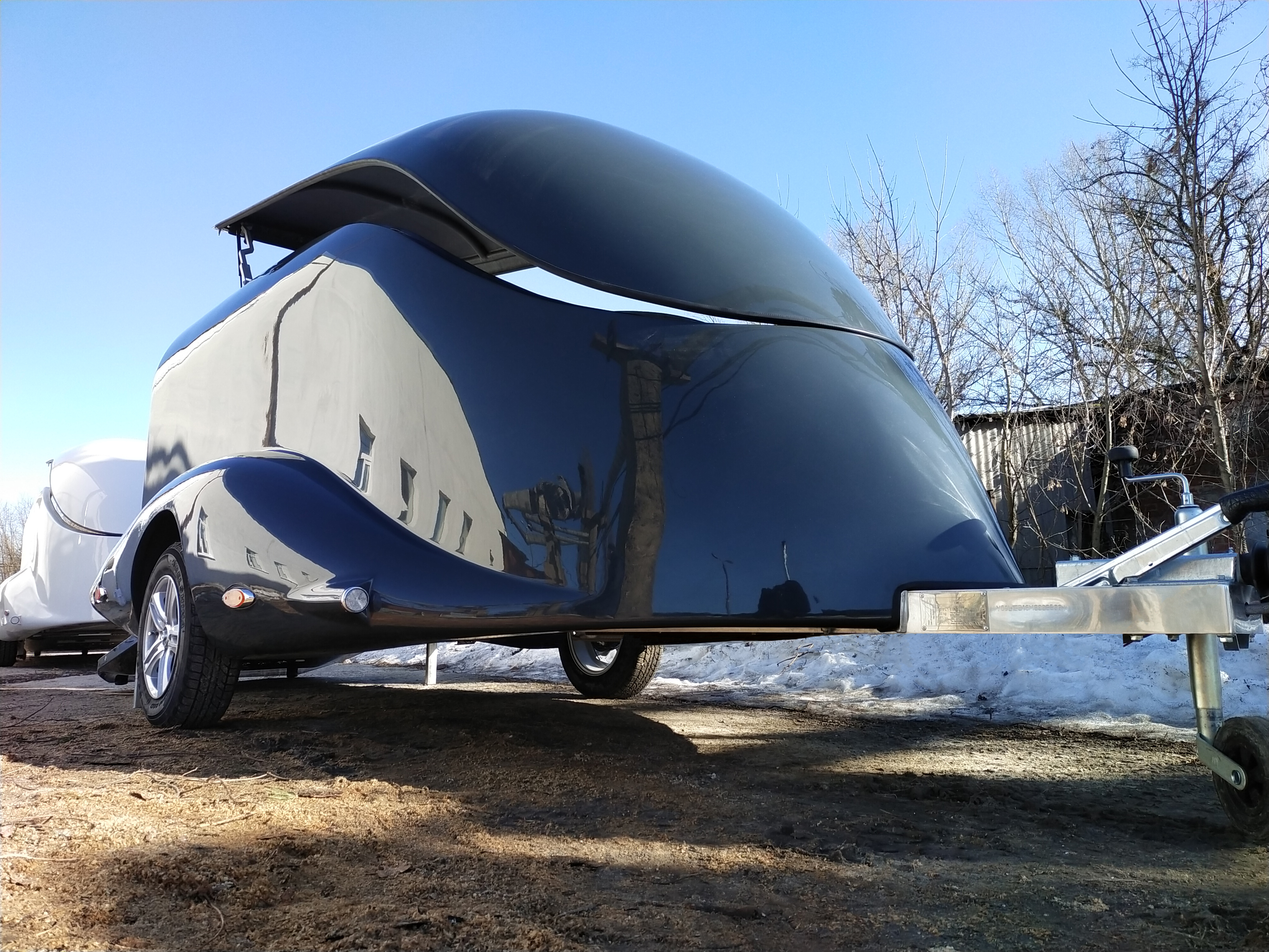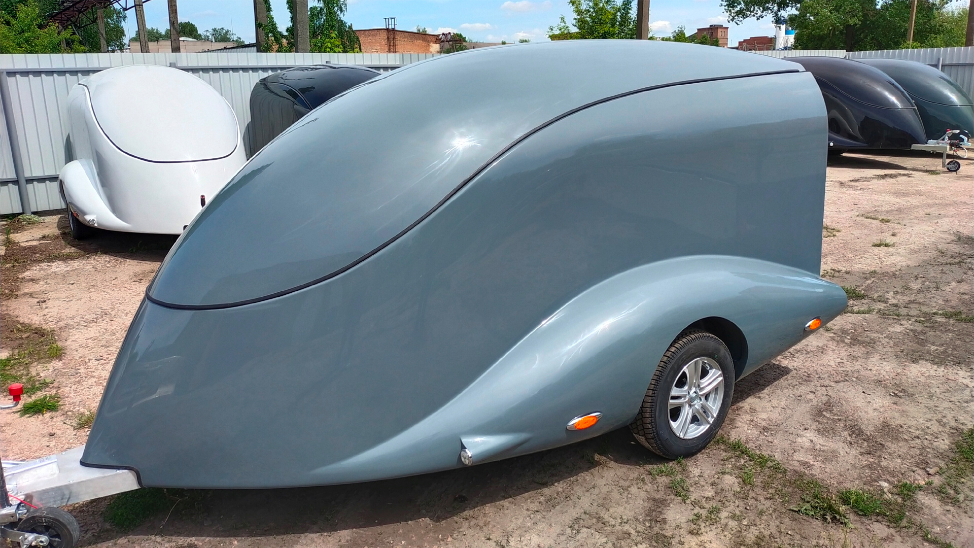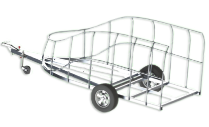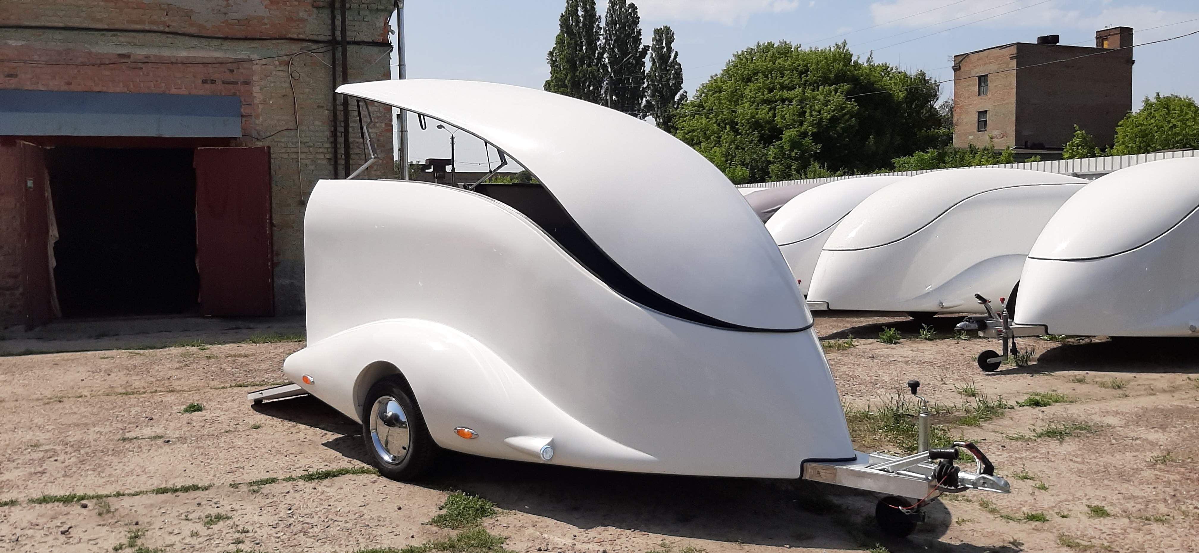 Le corps est assemblé autour du cadre, le recouvrant complètement (il n’es pas placé sur le dessus, comme dans les remorques de ce type). Ainsi, il forme un ensemble avec le cadre, et non une "superstructure" placée au-dessus du cadre. La remorque obtient le profil le plus bas possible et ressemble plus à un bolie de course rétro