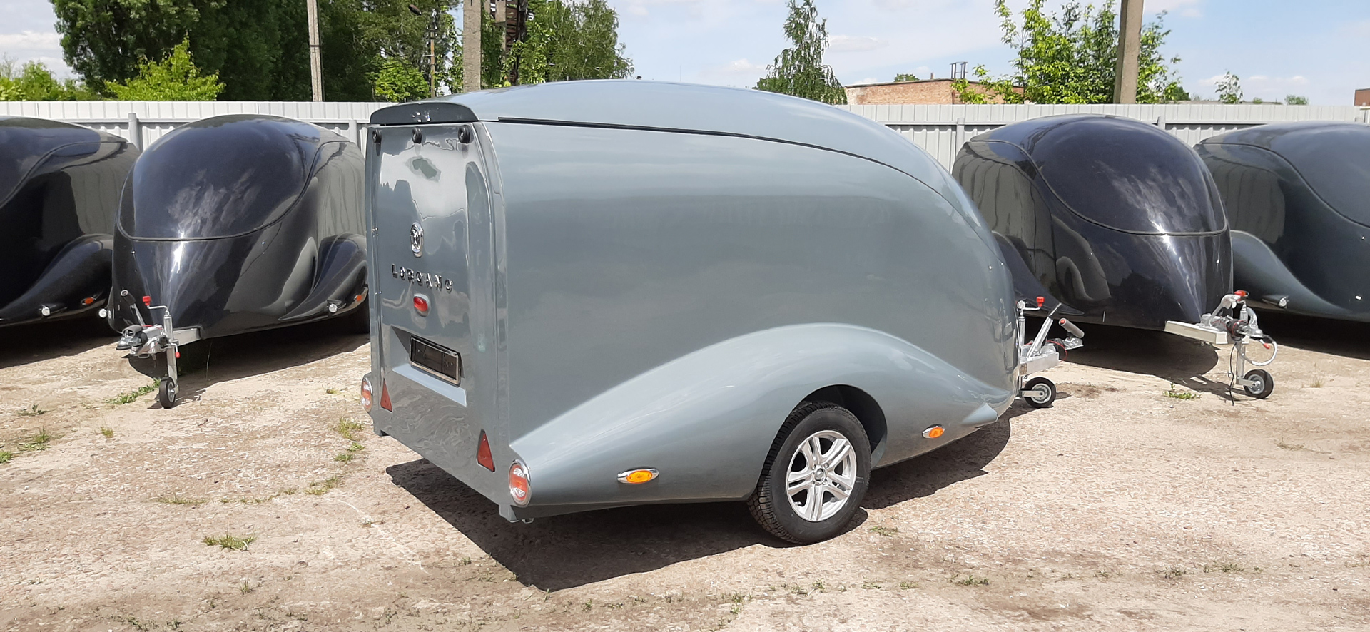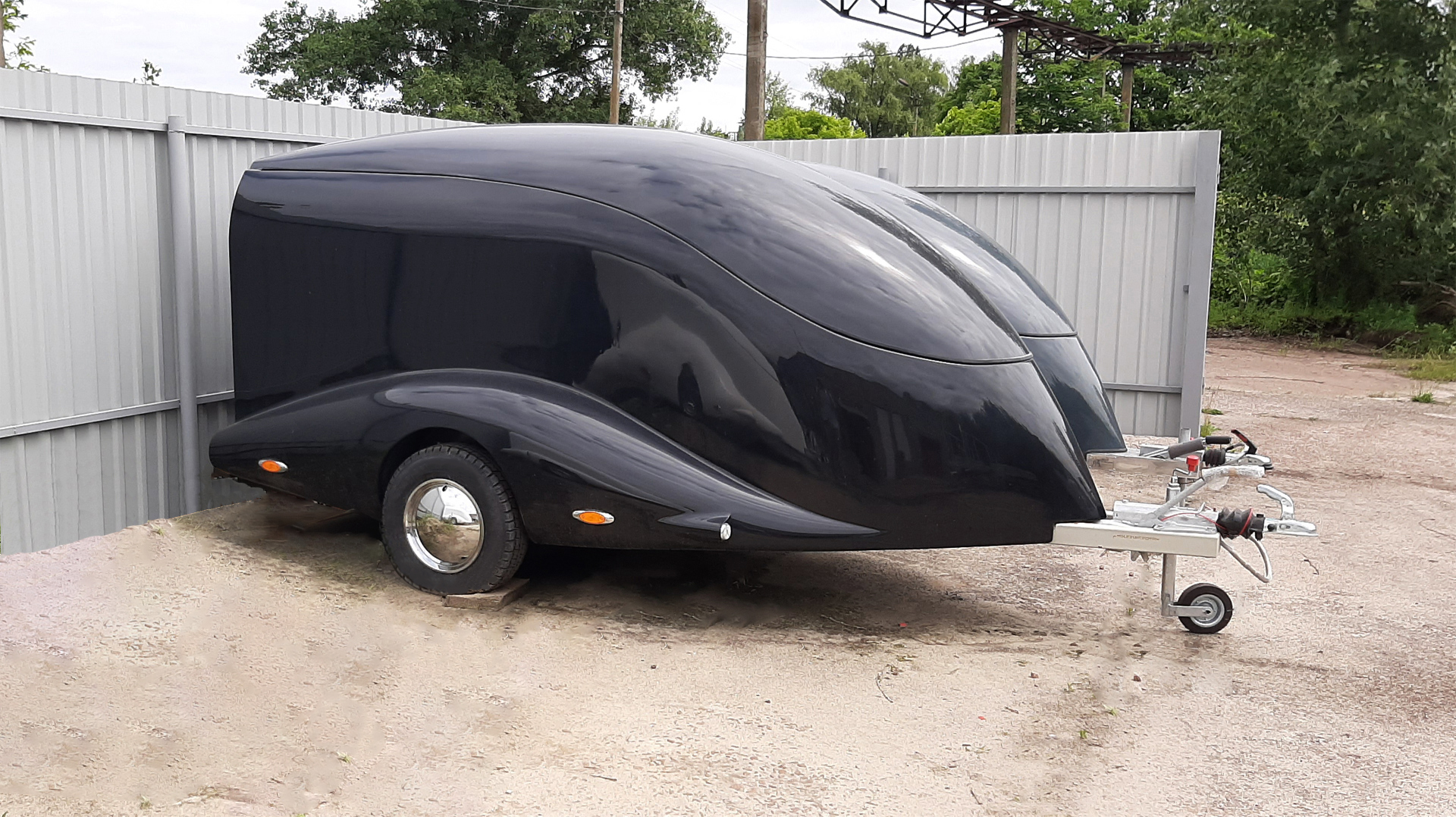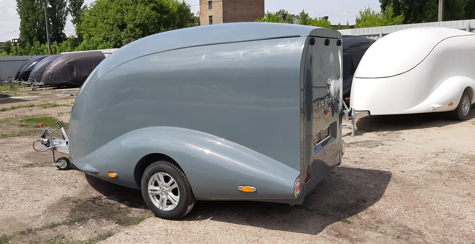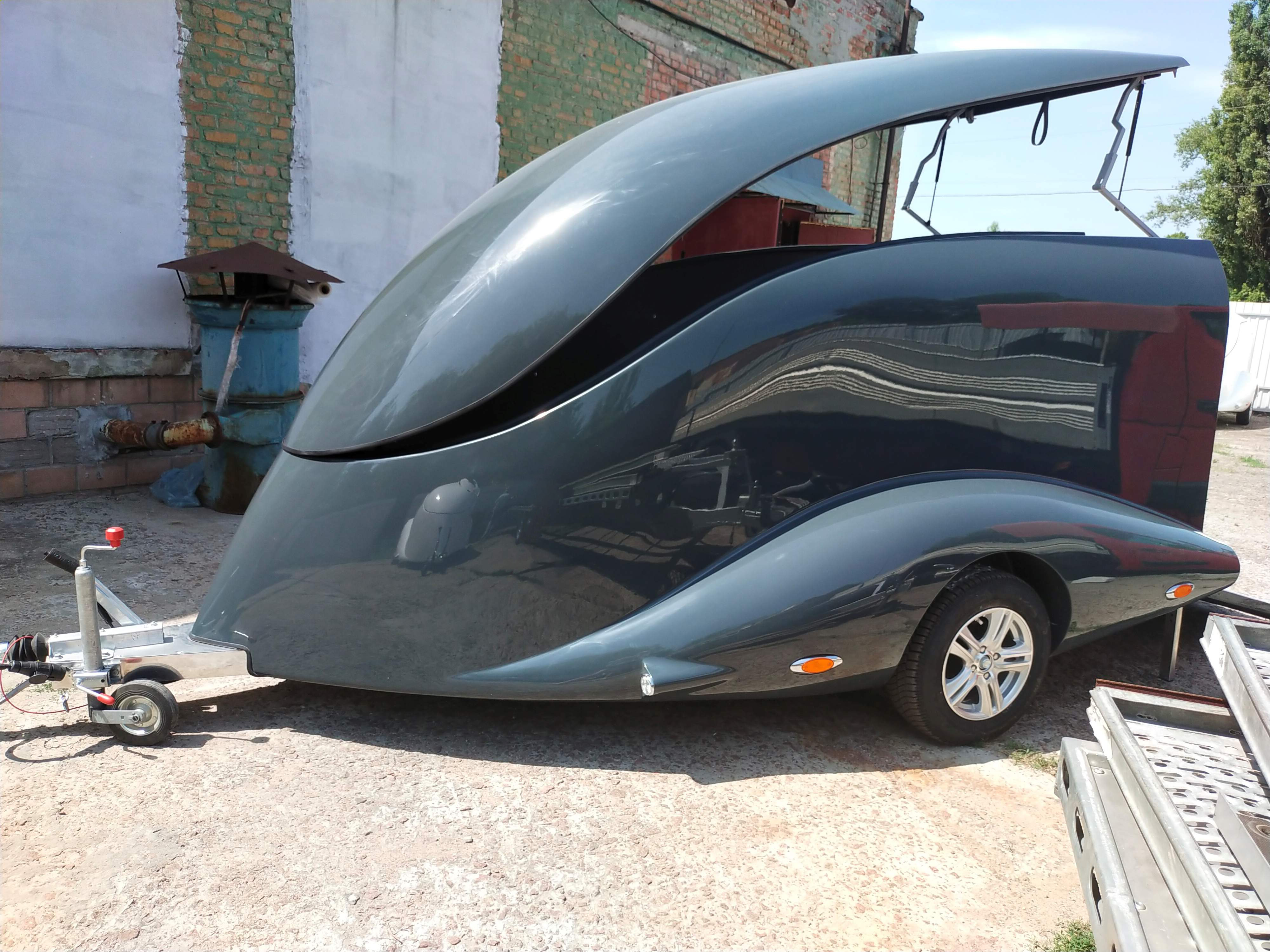 Le corps est assemblé autour du cadre, le recouvrant complètement (il n’es pas placé sur le dessus, comme dans les remorques de ce type). Ainsi, il forme un ensemble avec le cadre, et non une "superstructure" placée au-dessus du cadre. La remorque obtient le profil le plus bas possible et ressemble plus à un bolie de course rétro