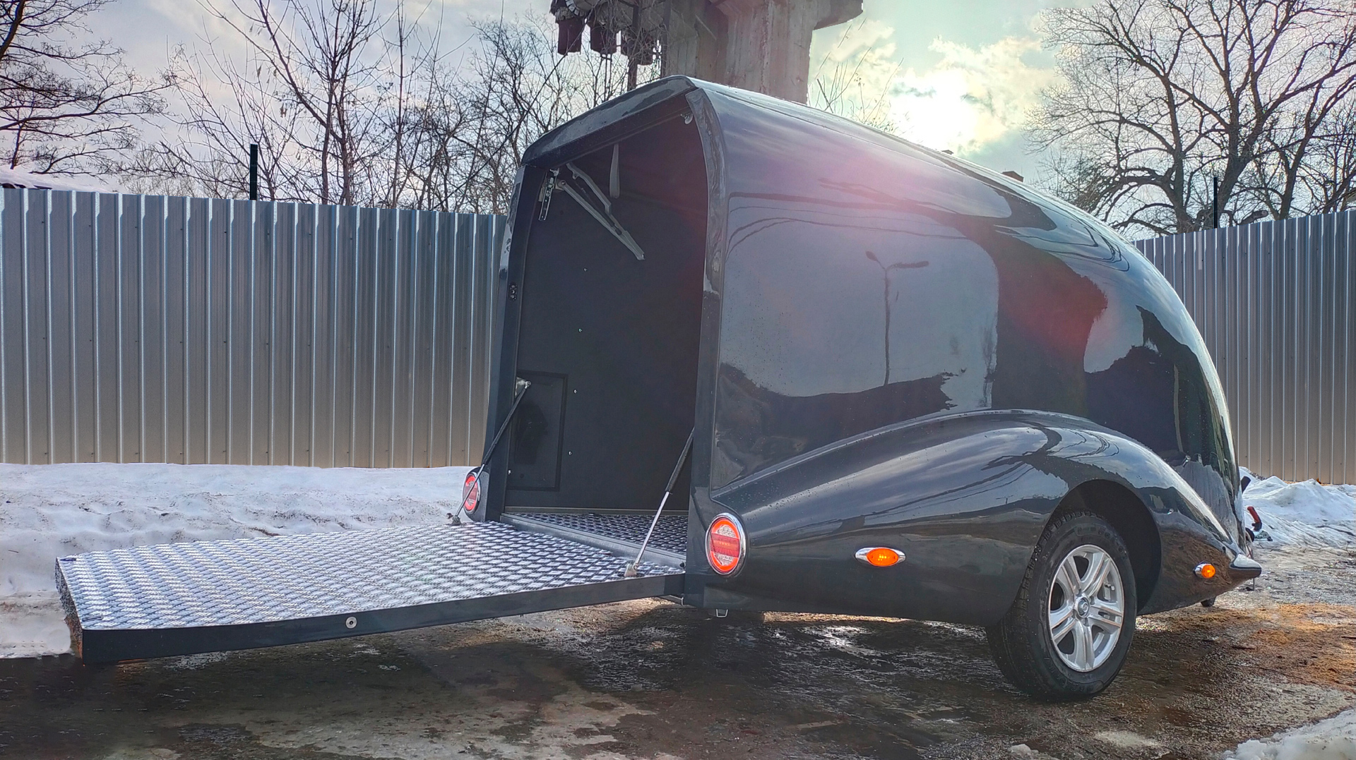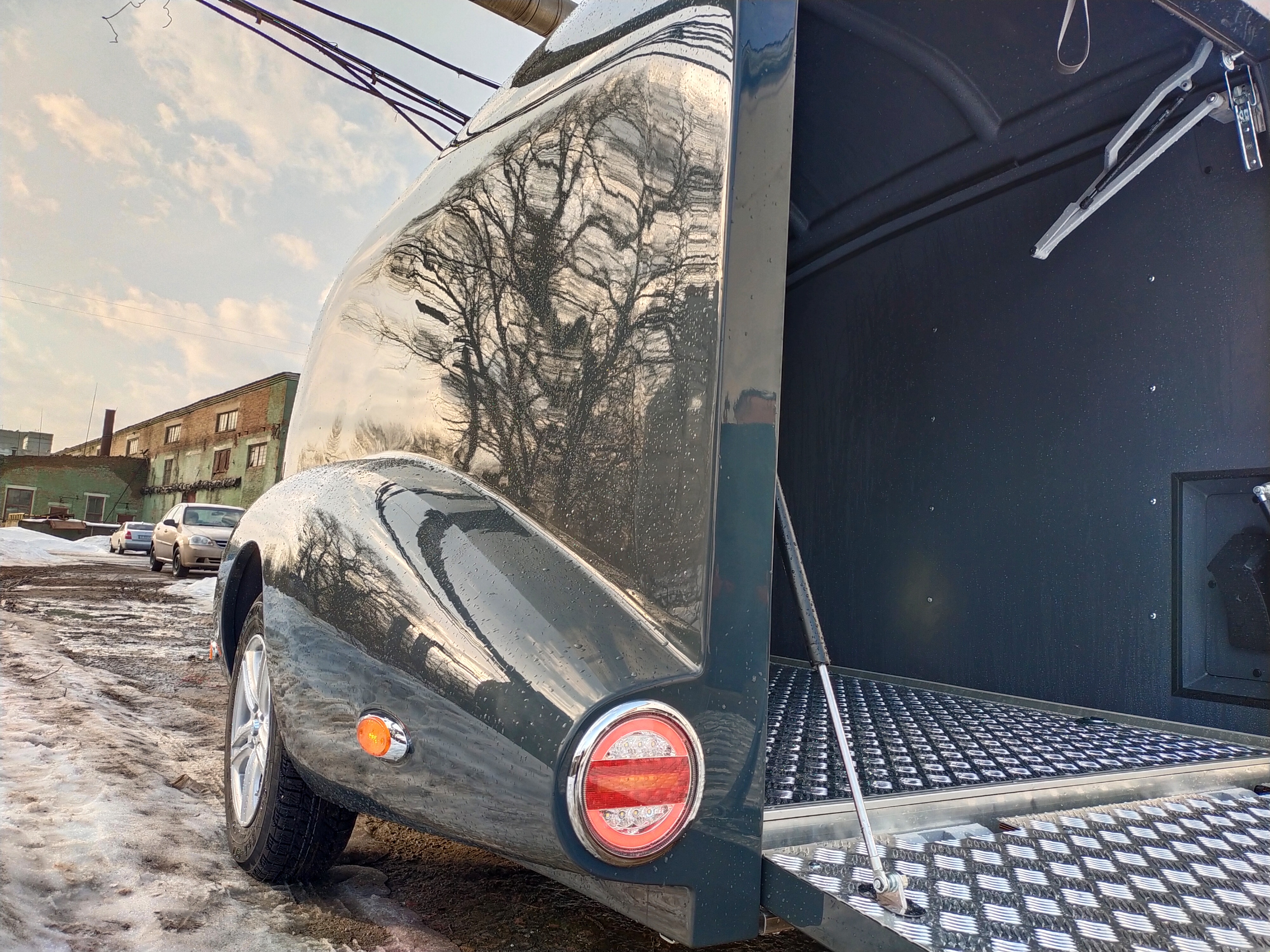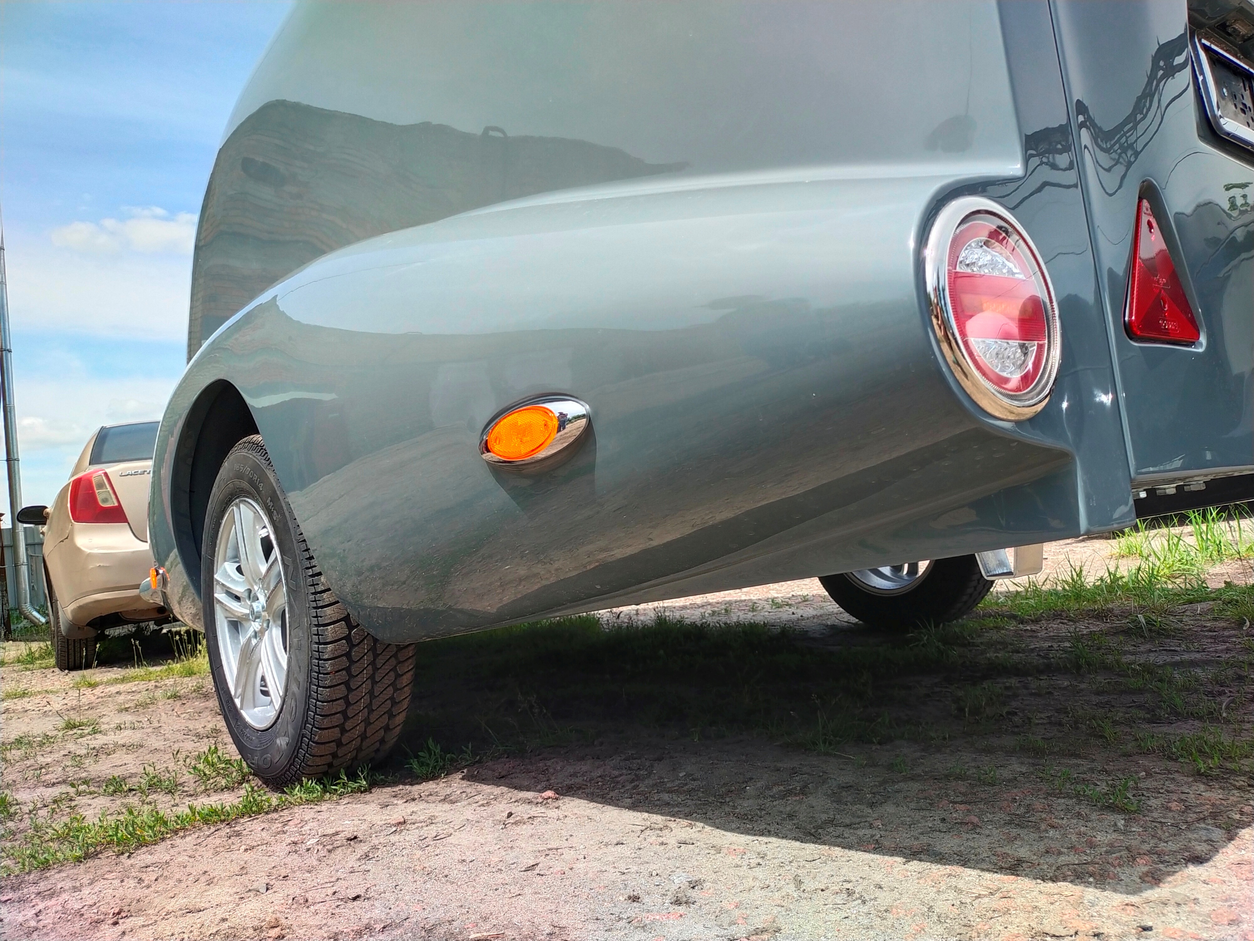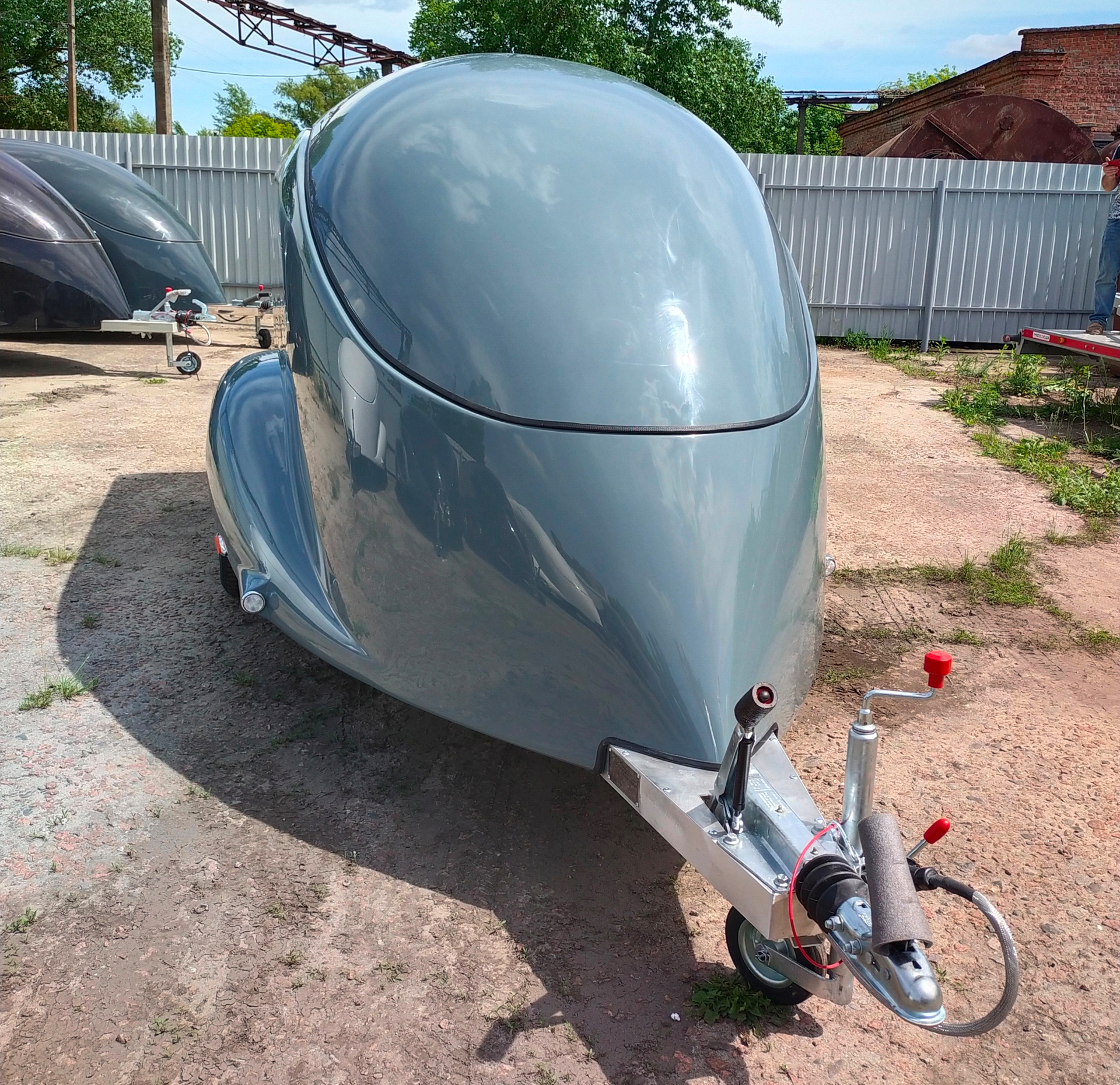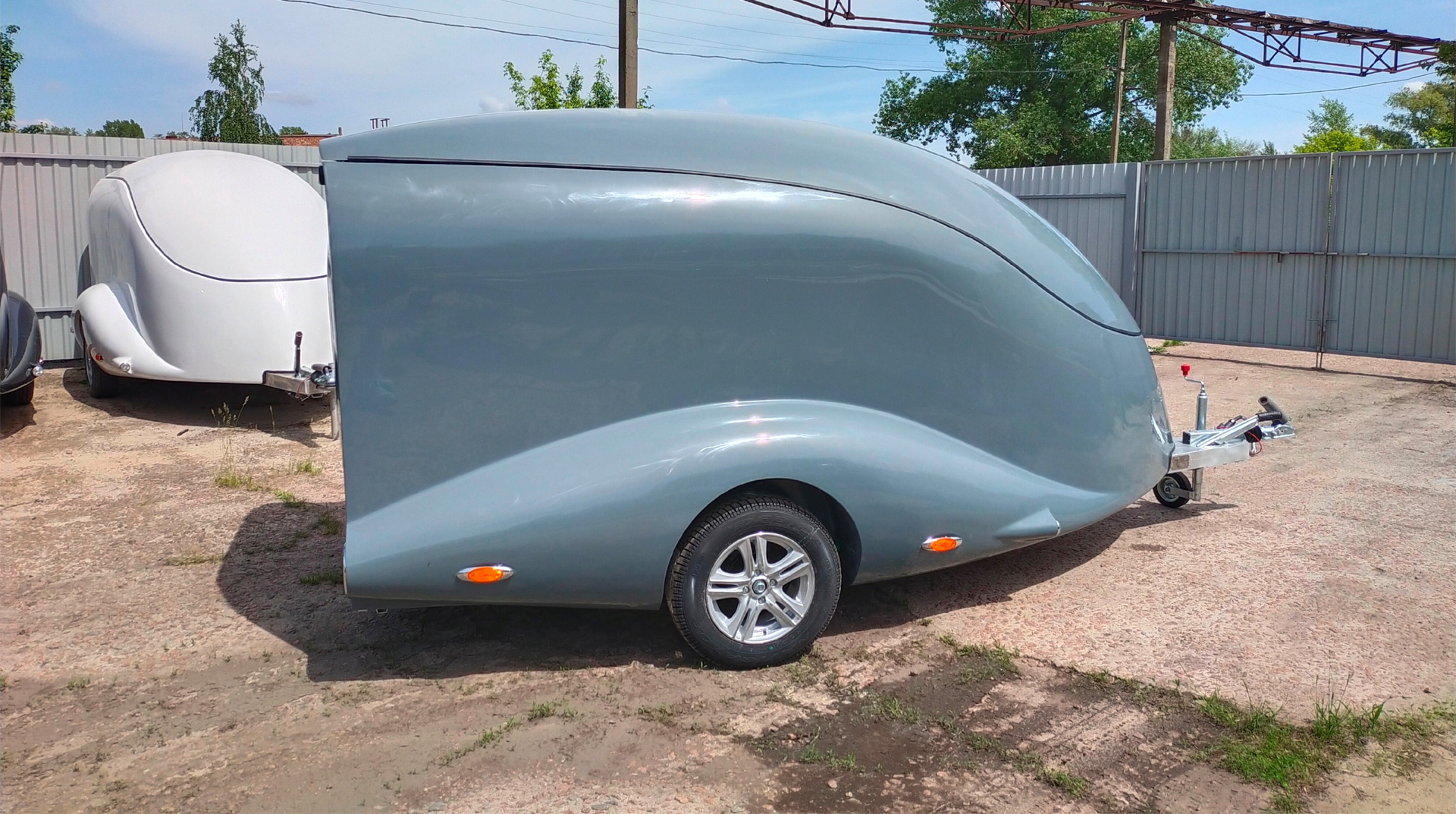 Le corps est assemblé autour du cadre, le recouvrant complètement (il n’es pas placé sur le dessus, comme dans les remorques de ce type). Ainsi, il forme un ensemble avec le cadre, et non une "superstructure" placée au-dessus du cadre. La remorque obtient le profil le plus bas possible et ressemble plus à un bolie de course rétro