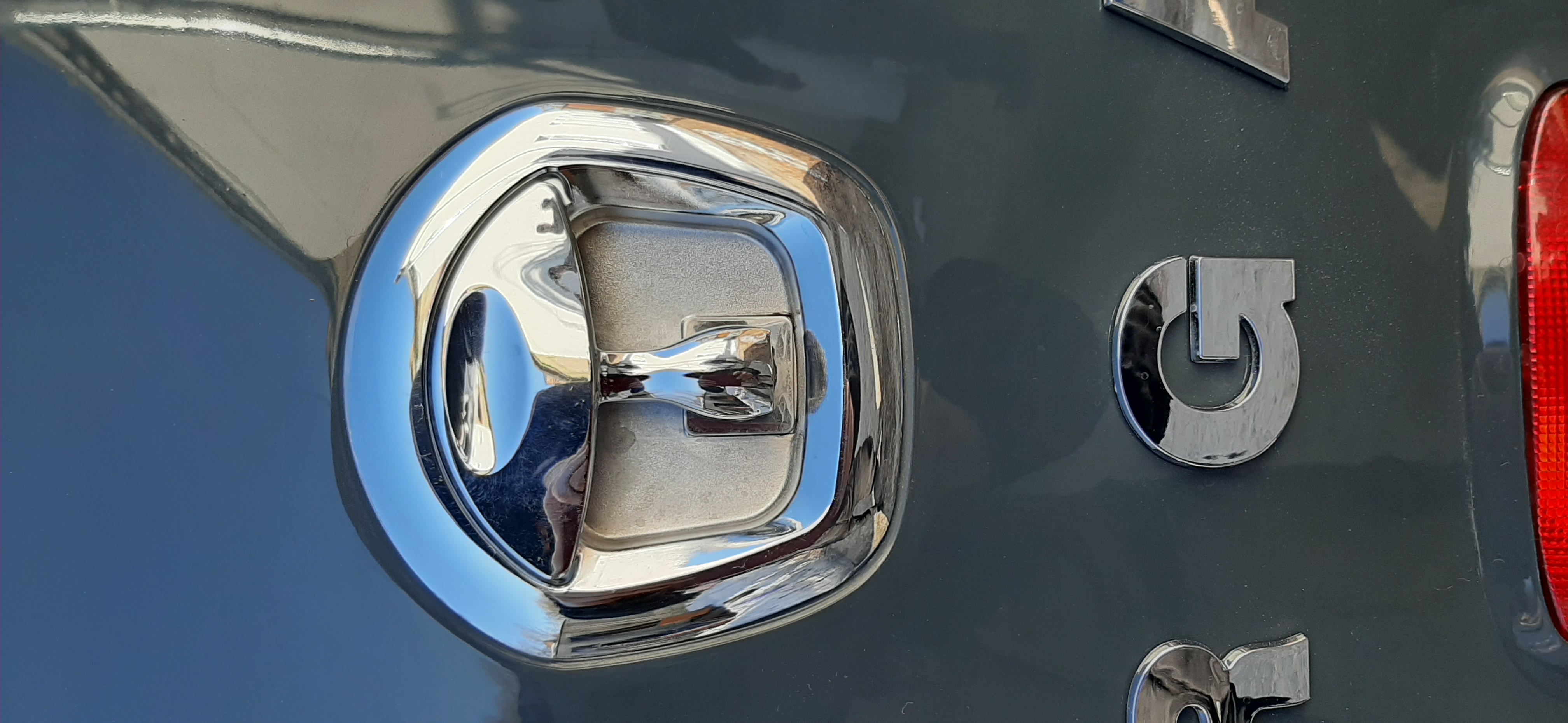 Serrure ronde type américaine en chromé sur la porte arrière
