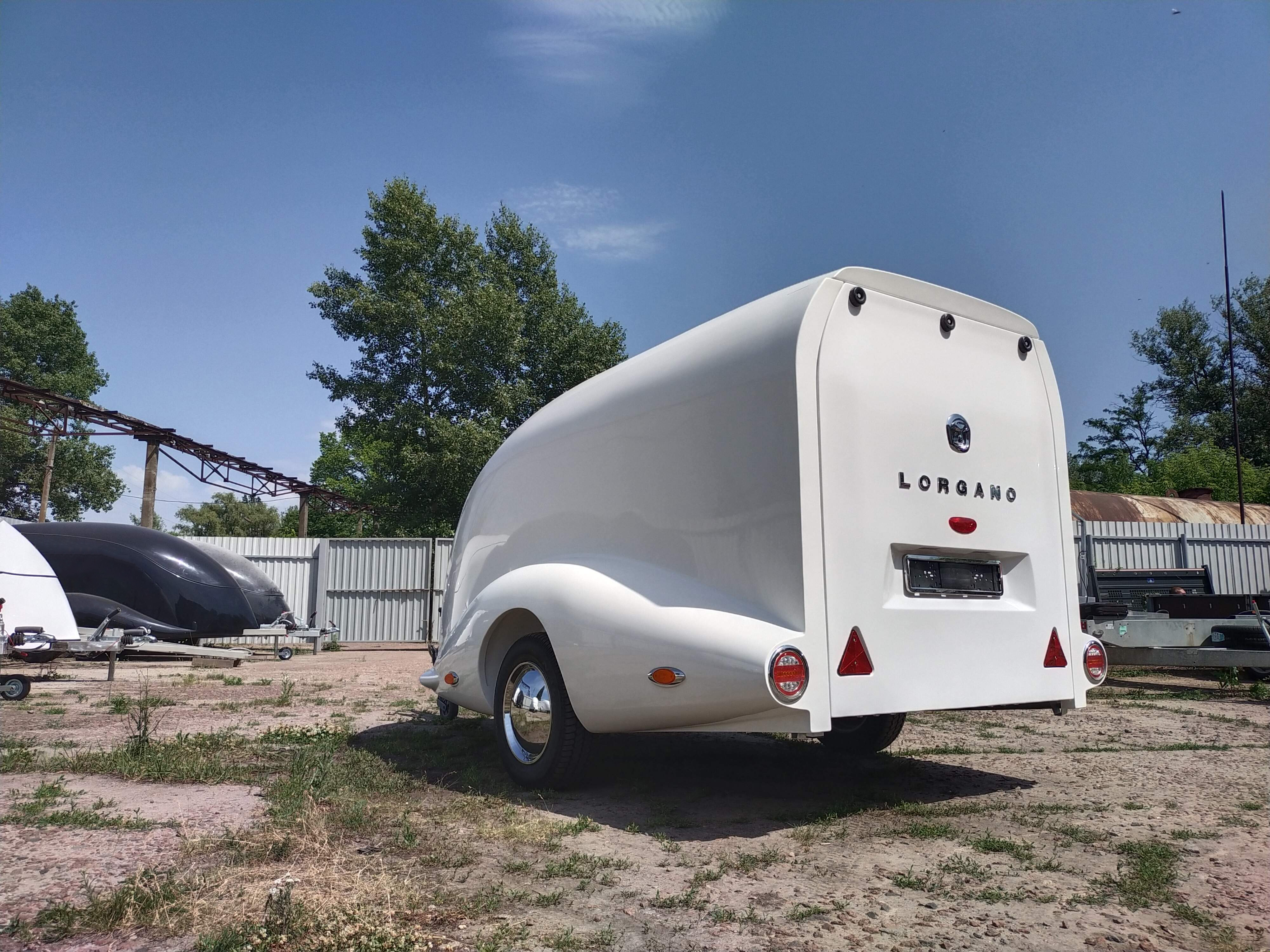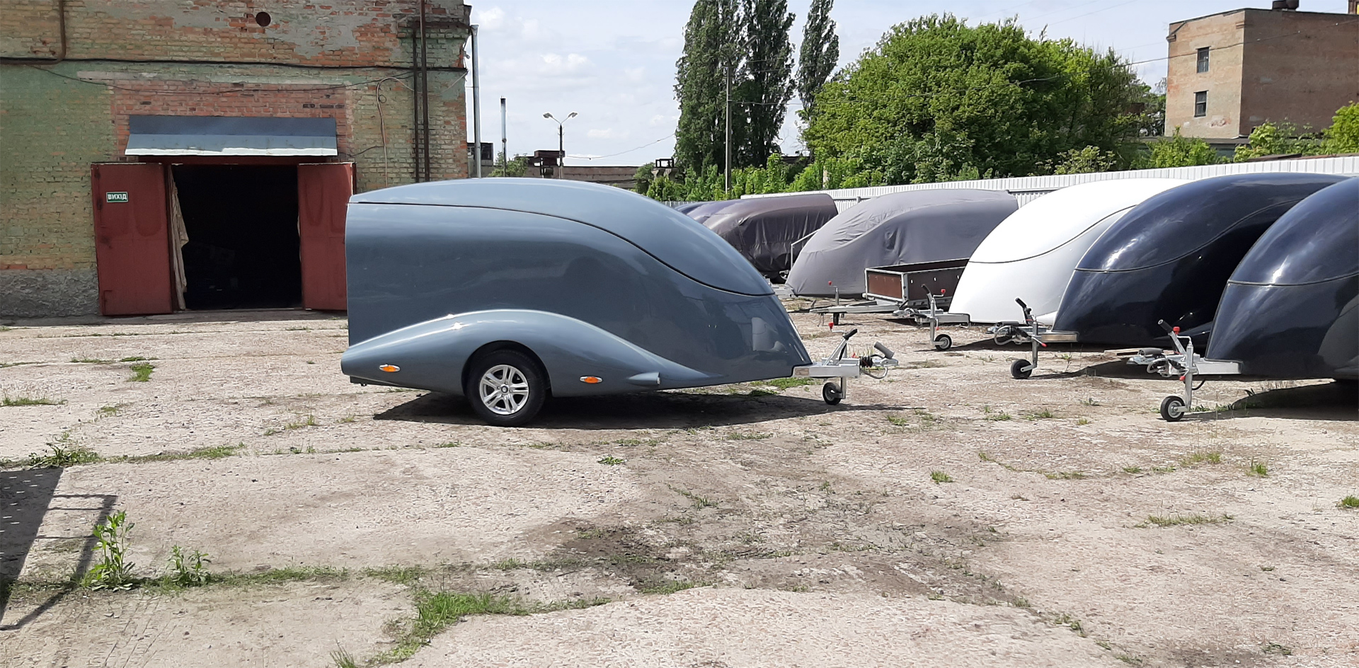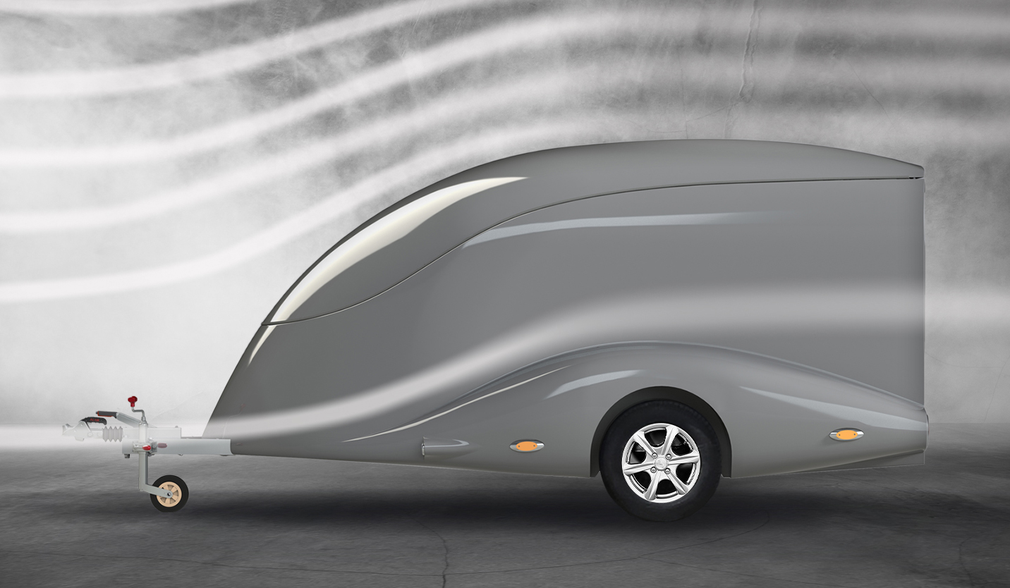 Le corps est assemblé autour du cadre, le recouvrant complètement (il n’es pas placé sur le dessus, comme dans les remorques de ce type). Ainsi, il forme un ensemble avec le cadre, et non une "superstructure" placée au-dessus du cadre. La remorque obtient le profil le plus bas possible et ressemble plus à un bolie de course rétro