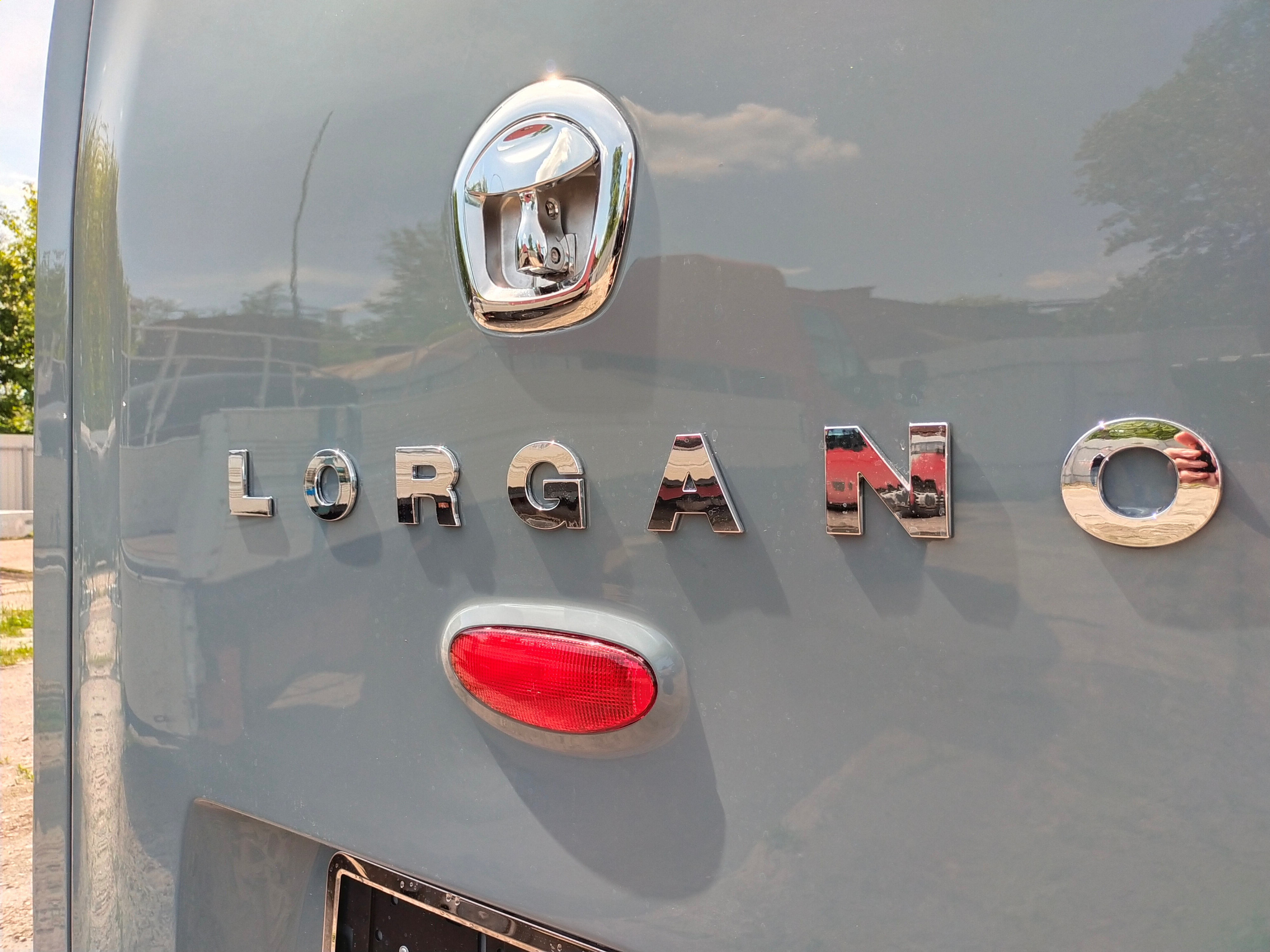 Serrure ronde type américaine en chromé sur la porte arrière